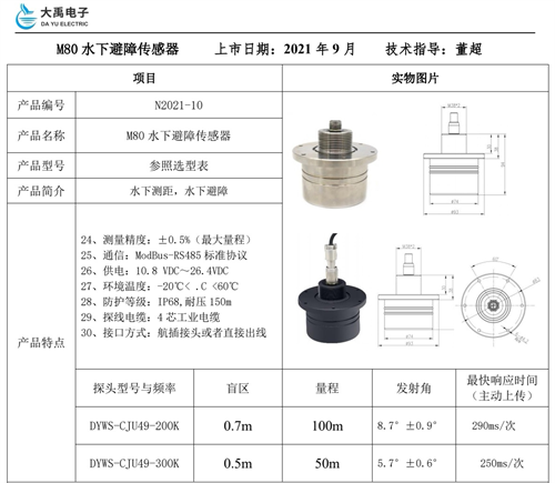 大禹电子M80水下避障传感器用于污泥沉淀池清淤机器人避障