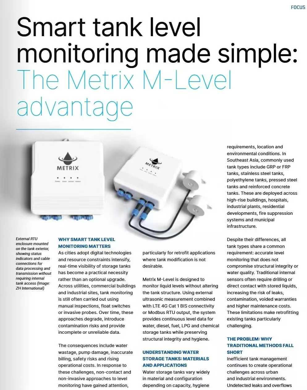 在城市智慧水务与建筑精细化管理的浪潮中,可靠的水箱液位监测是保障供水安全与提升运维效率的关键一环。大禹电子超声波液位传感器凭借其卓越性能,成功落户新加坡,为当地众多居民楼与商业楼宇的生活用水水箱提供了稳定、精准的非接触式液位监测解决方案,并荣获亚太地区专业杂志案例收录,成为海外智慧水务领域的标杆应用。